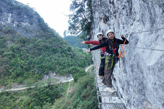 地面联动激活全域活力。“体育+旅游”让乐业热度攀升。2025年以来,“邀约美丽山水间·徒步广西”“跨年徒步”等20场赛事接连举办,“一月一徒步”人气爆棚,吸引游客组团参与,助推“户外乐园”品牌打响。火卖飞虎洞飞拉达攀岩同样火爆,“岩壁铁道”设计让普通人漫步悬崖,260米攀登搭配300米溜索,成Z世代探险新宠。