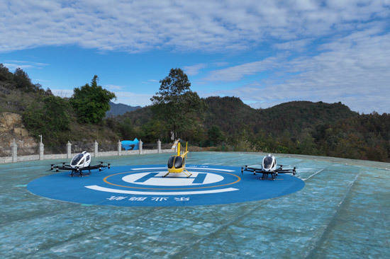 云端经济打开新视野。低空飞行基地内直升机轰鸣,游客俯瞰串珠状天坑群。这里开辟喀斯特山区“空中经济走廊”,引进2台全球首款CAAC“四证齐全”的亿航EH216-S载人自动驾驶飞行器,一键起飞、AI领航,带游客静音掠过大石围天坑、布柳河等景点,既为低空文旅注入核心力量,也让游客体验科技与山水交融的空中之旅。